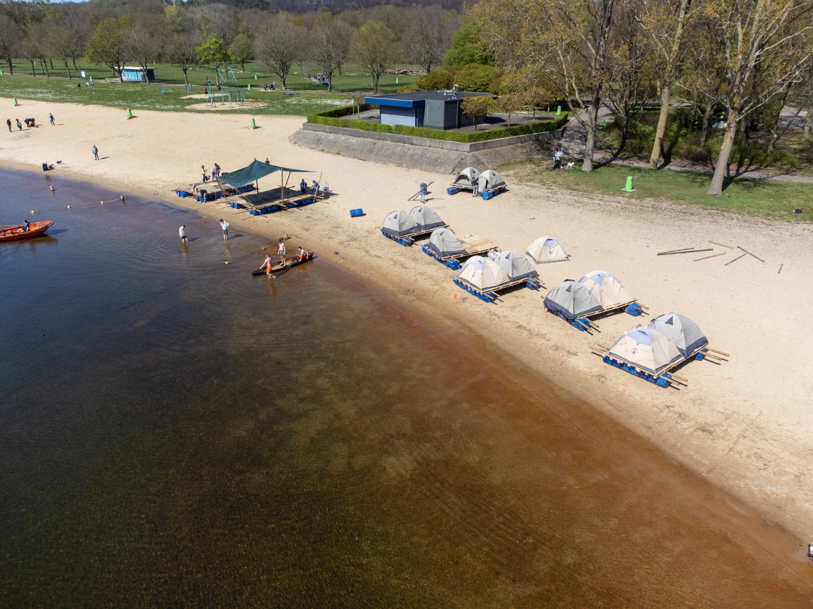 Een zelfgemaakt vlot als basiskamp